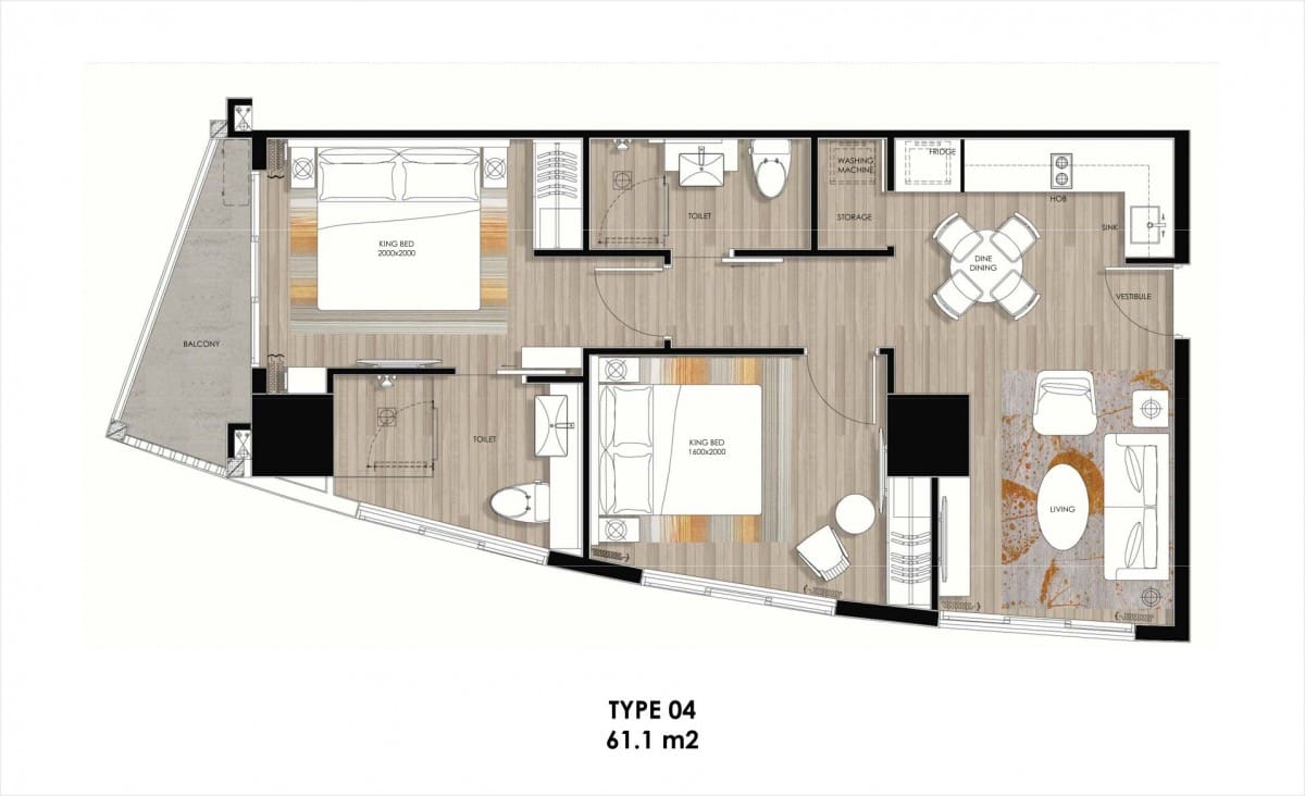 The rental fee for this lovely apartment is 925$/month 24 million VND). The area of the apartment is 61.1 square meters, providing ample space for comfortable living.