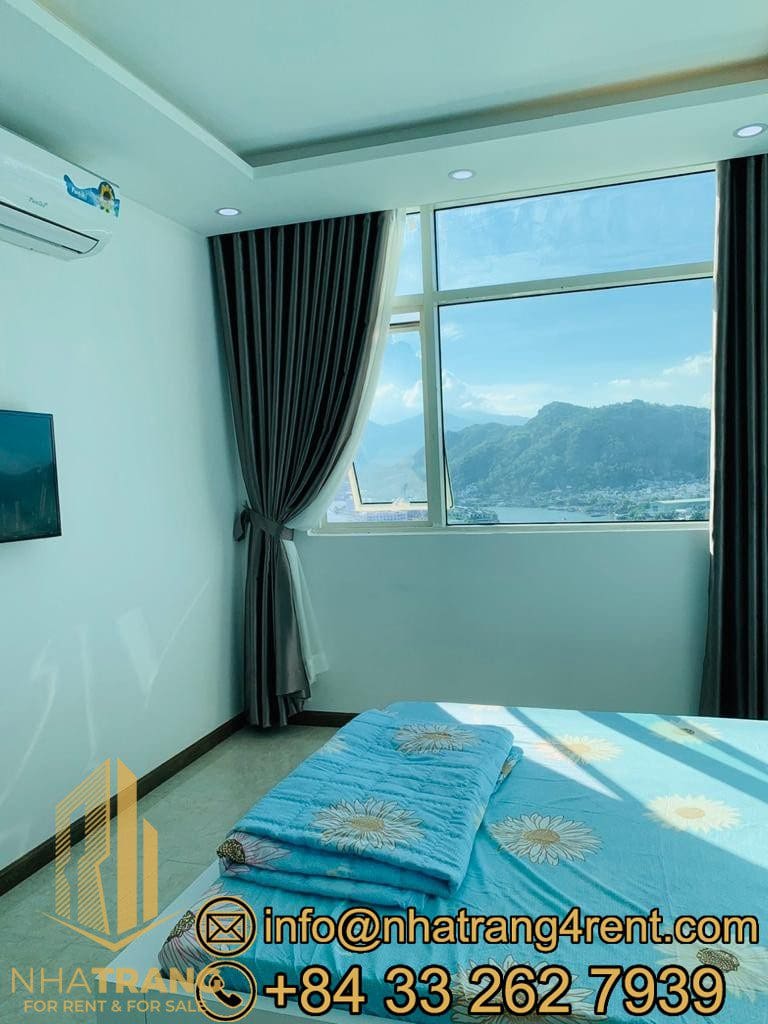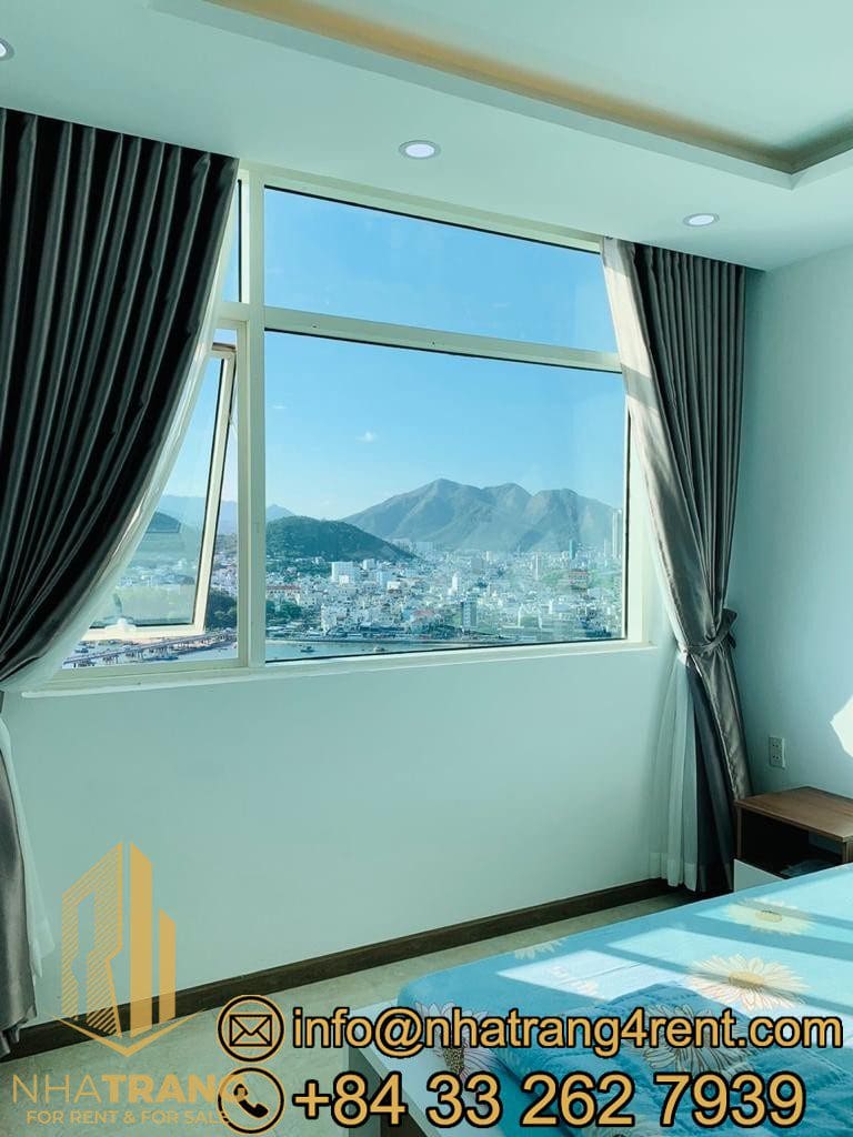 Two-bedroom apartment for rent in Muong Thanh Khanh Hoa Building with river and side sea view on 20th floor, beside Tran Phu brigde, located near the center.