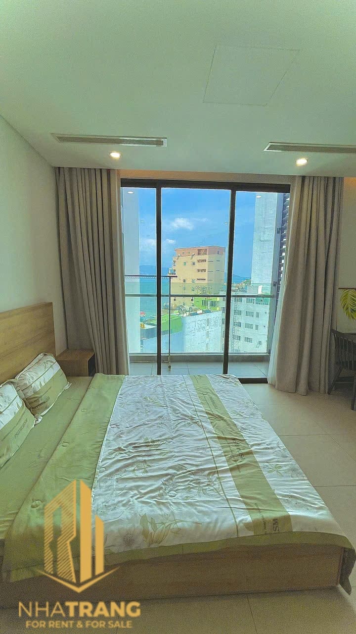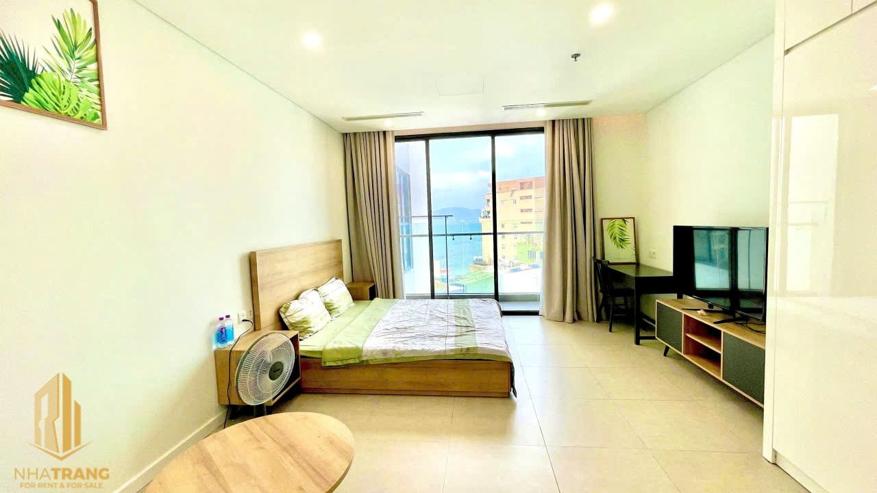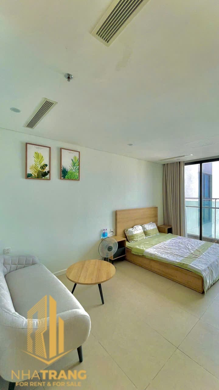 A bland studio with a side sea view apartment is inside 5* standard Scenia Bay Building. The apartment features 1 bed, 1 living room, 1 bathroom, and 1 kitchen. It offers a comfortable and stylish living space for residents. The building is located in the north of Nha Trang City, just a few steps away from the beach.
