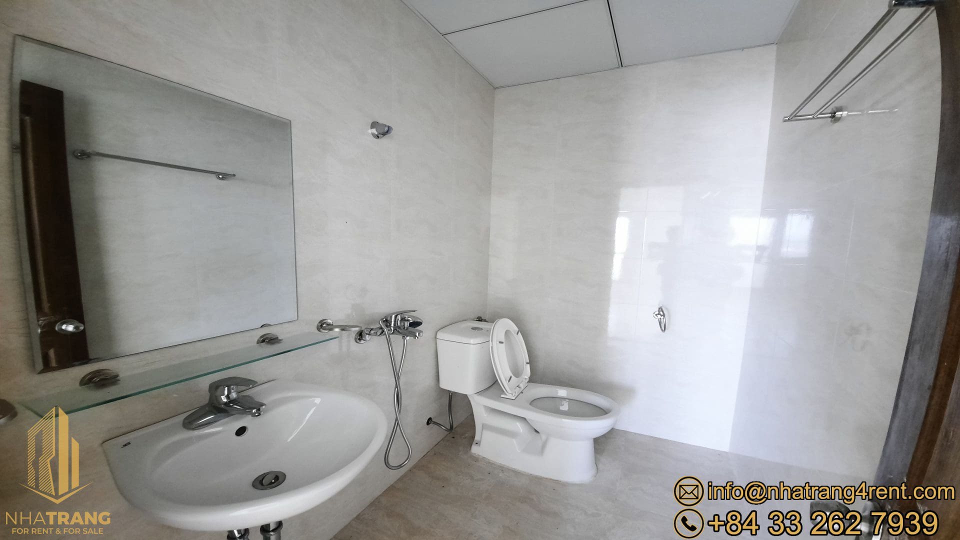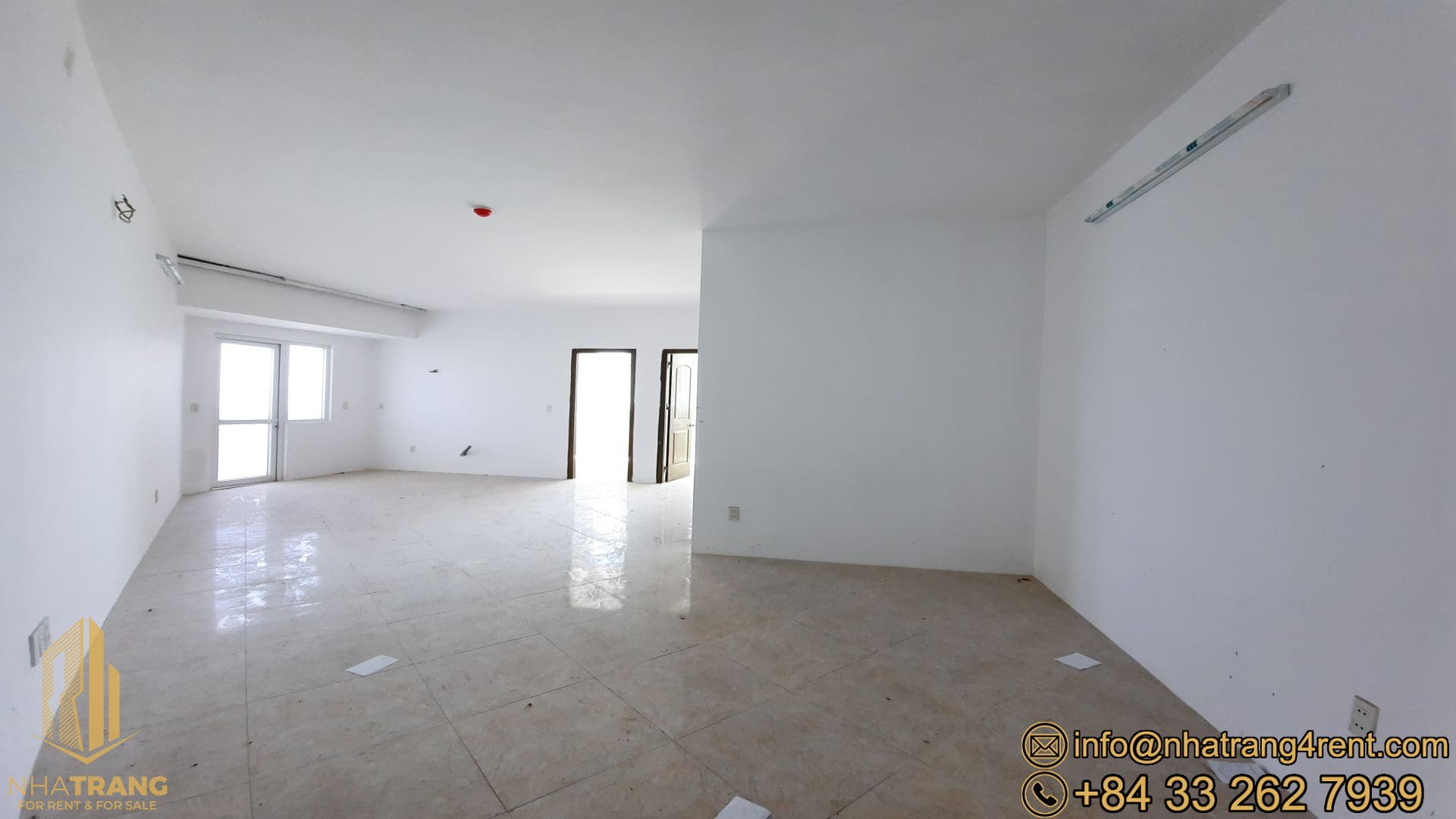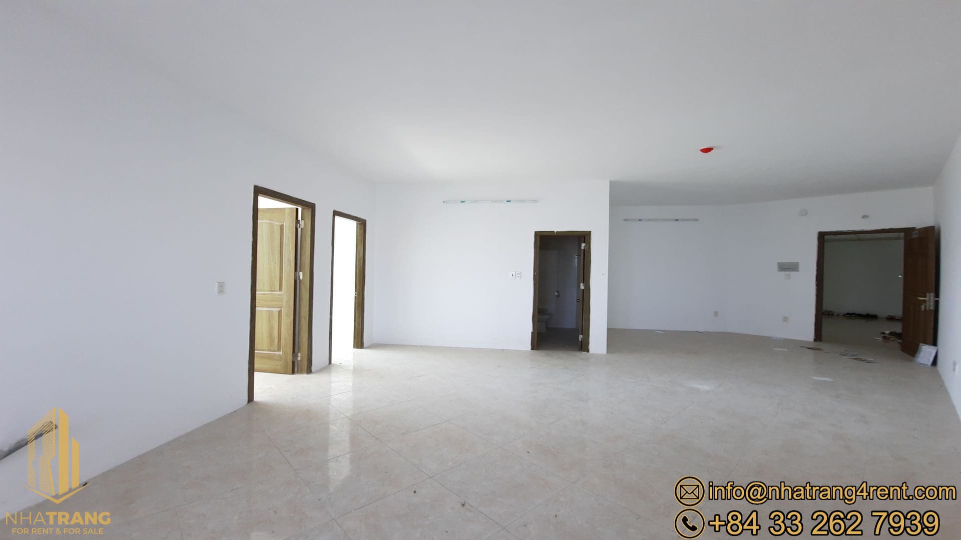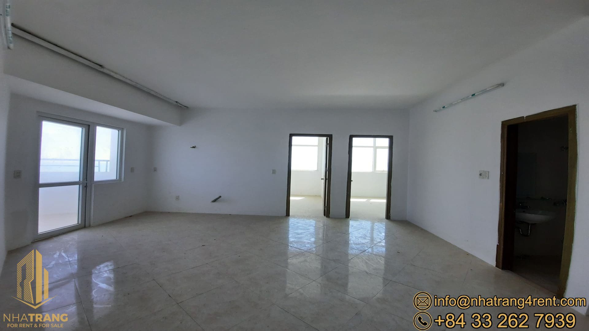 Equipment: doors, windows , white painted walls, tiled floor and full bathroom(s) , basic lights , sinks, toilet, shower.